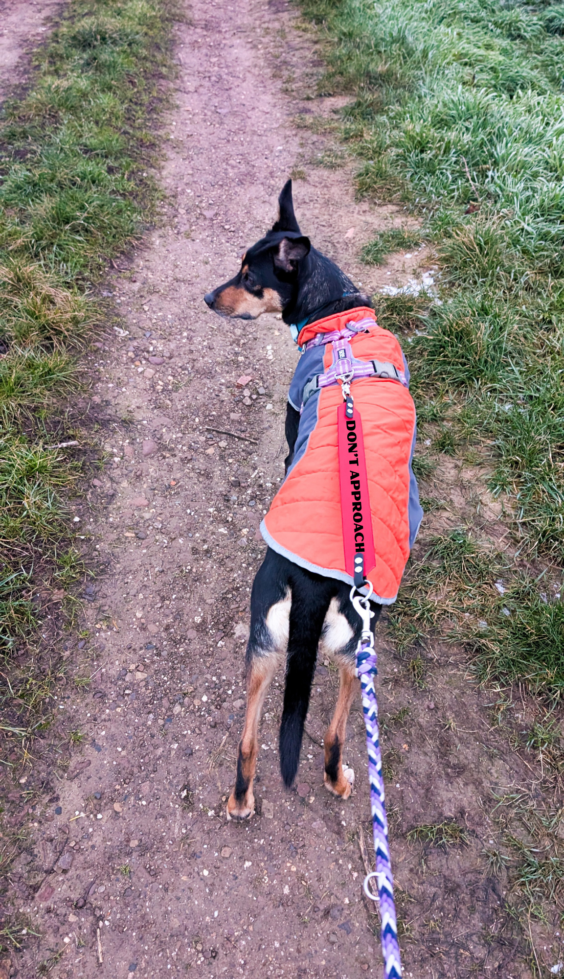 Das Band wird zwischen Leine und Halsband oder Geschirr eingespannt und ist dadurch optimal positioniert. Ideal für Hunde, die Abstand brauchen, sich im Training befinden, reaktiv, unsicher oder taub sind – oder einfach klar signalisieren sollen, wie mit ihnen umzugehen ist.